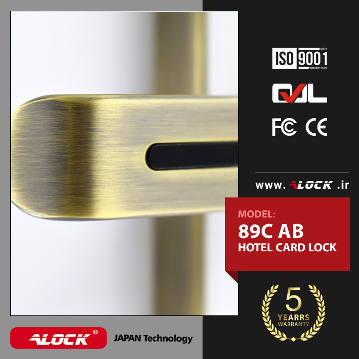 دستگیره هتلی ALOCK مدل 89C AB در گروه قفل های کارتی هتلی قرار میگیرد. این دستگیره با قطعات ساخت ژاپن تولید شده است. تکنولوژی برد این دستگیره آفلاین کارتی هتلی از نوع مایفر Mifare 13.56 Mhz میباشد. بدنه این قفل هتلی از جنس زینک ساخته شده است. بدون شک میتوان گفت این دستگیره یکی از قویترین دستگیره های هتلی در دنیا میباشد. بدنه بسیار مستحکم و با متریال فلزی سنگین و نوع دایکست به کار رفته در ساخت این محصول، سبب افزایش قدرت و استحکام آن در بازه زمانی طولانی شده است. توان تحمل فشار بر روی دستههای این محصول بیش از 2200 نیوتن بوده که کیفیت این دستگیره را به رخ دیگر رقبا میکشد.