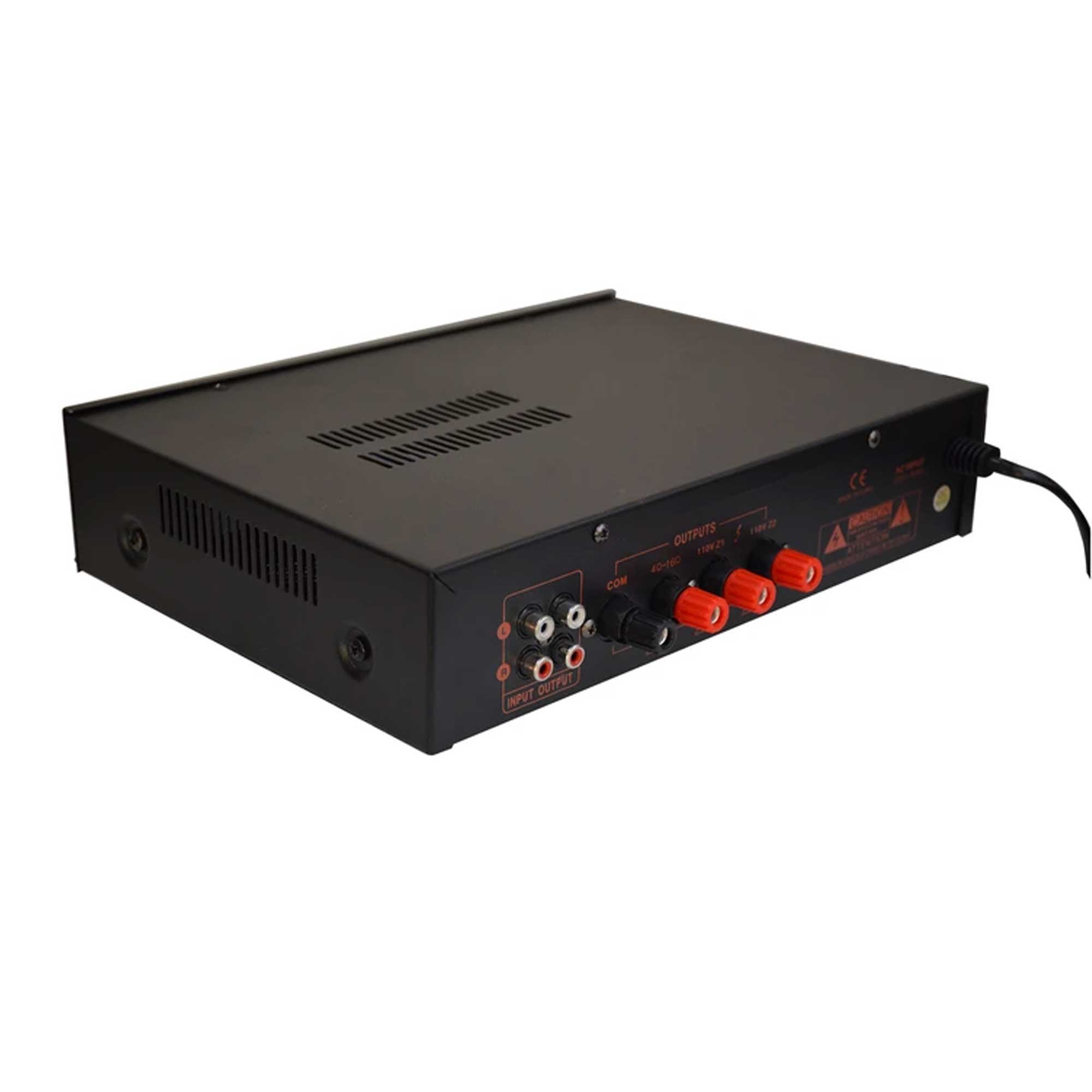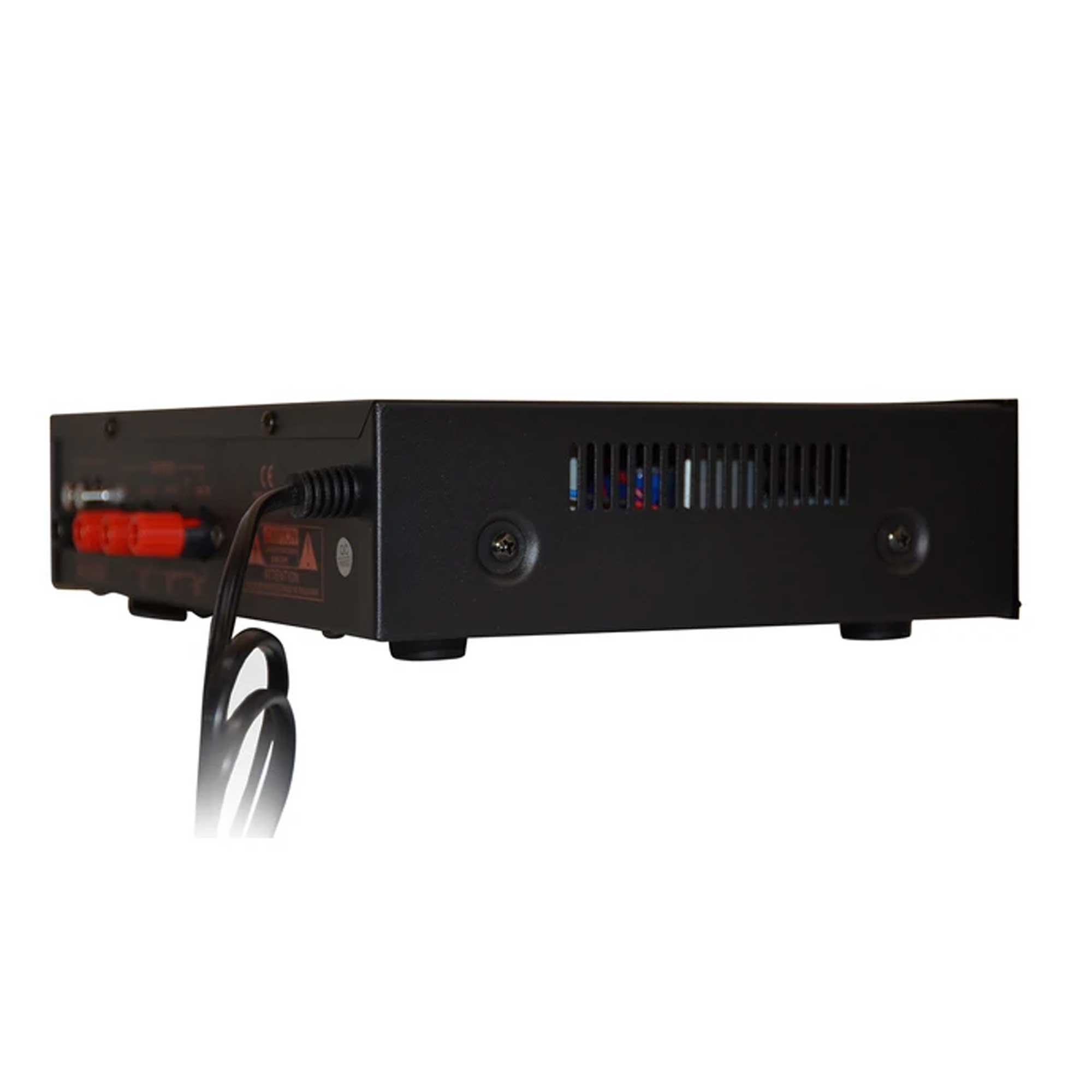 این آمپلی فایر از قابلیتهایی مثل اتصال بلوتوث برای پخش موسیقی از دستگاههای مختلف، ورودی و خروجی AUX و حتی درگاه SD Card برخورداره. همچنین، با توان خروجی 200 وات و قابلیت تنظیم Bass و Treble، شما میتونین صدای دلخواه خودتون رو ایجاد کنید. ویژگیهای دیگهای مثل کنترل صدای میکروفون و داشتن دو زون برای تقسیم صدا در محیطهای بزرگتر، این دستگاه رو تبدیل به یک ابزار حرفهای برای کاربریهای مختلف میکنه.