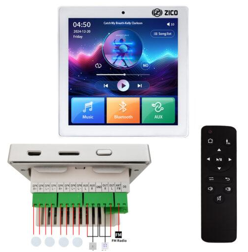 آمپلیفایر دیواری زیکو H-61 در ابعاد جمعوجور 86×86×10 میلیمتر طراحی شده و به راحتی بر روی دیوار نصب میشود. صفحه نمایش 4 اینچی آن نهتنها ظاهر مدرنی به دستگاه بخشیده بلکه امکان مشاهده آسان اطلاعات، لیست موسیقی و حتی فایلهای تصویری را فراهم میکند.